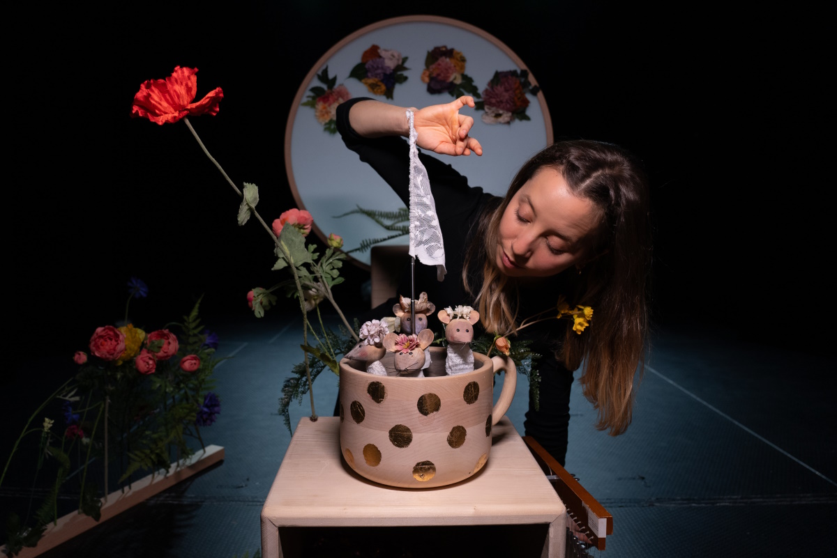 In the performance A Big Pot, a Small Mouse, poetic verses come to life as melodies, while refined movement and visual transformations reveal the hidden layers of poetic worlds. A magical theatrical experience is created, in which words are given new, theatrical life. Young audiences will experience a journey through these fairy-tale worlds as a subtle intertwining of various artistic expressions. Poetry, music, movement, and visual art merge into a harmonious whole, leading them on an unforgettable journey full of imagination and wonder.